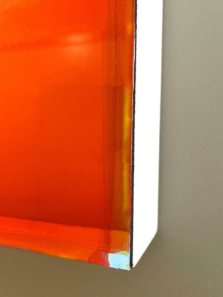 It's hard to photograph these paintings because the colour is so fabulously intense. So I propped the two 12 x 12 inch paintings together on a table in the office to show them in a different setting. See image below.