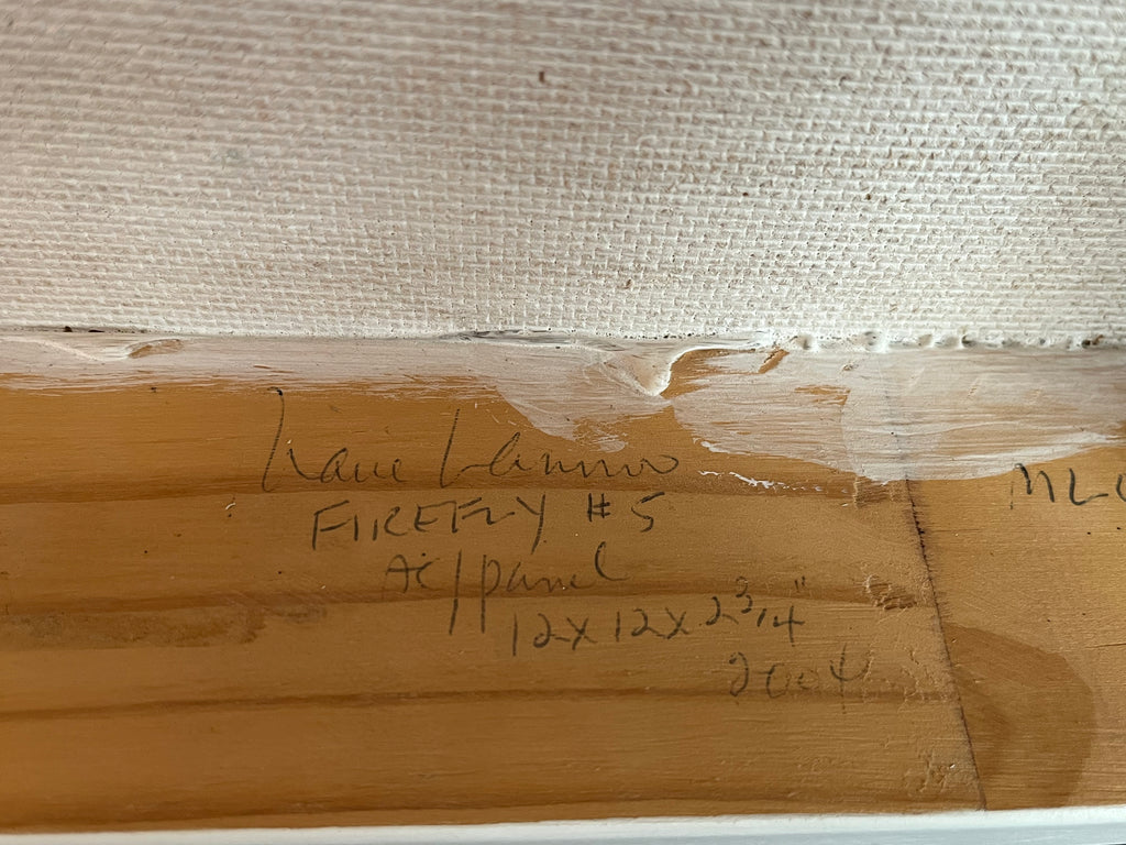 This work is from Tatar Gallery, Toronto where the artist showed early in her career. In one of Canada's most influential abstract resources, Roald Nasgaard lists Lannoo as one to watch at the turn of the millennium. The "surfaces are smooth, high-gloss and very responsive to their surroundings." (Abstract Painting in Canada, 2007. Pg 393)