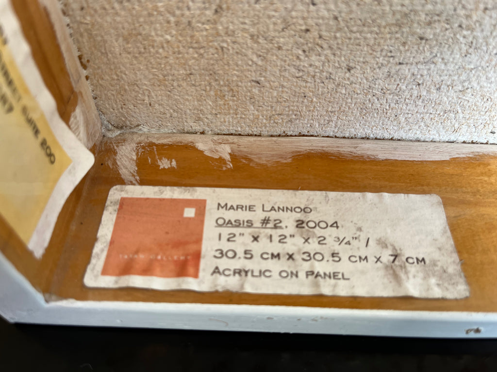 This work is from Tatar Gallery, Toronto where the artist showed early in her career. In one of Canada's most influential abstract resources, Roald Nasgaard lists Lannoo as one to watch at the turn of the millennium. The "surfaces are smooth, high-gloss and very responsive to their surroundings." (Abstract Painting in Canada, 2007. Pg 393)